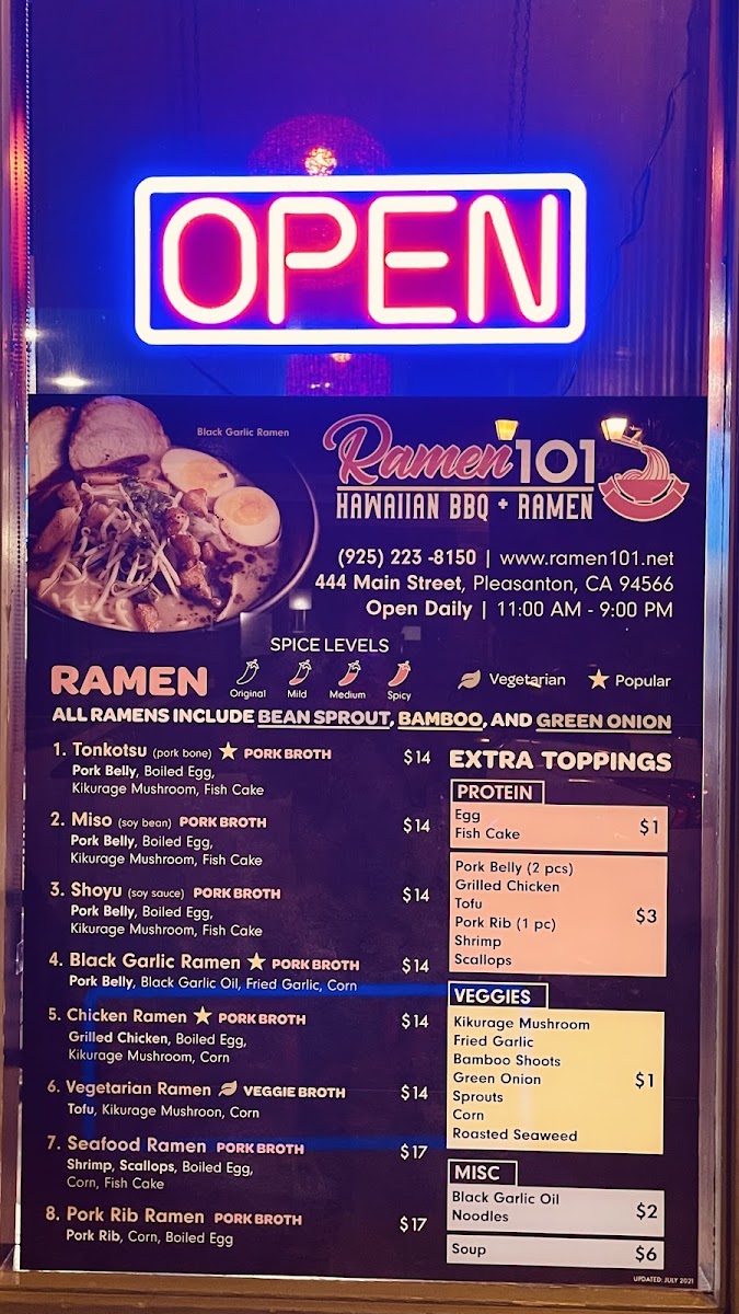 Welcome to Ramen 101 - Pleasanton, a local treasure located at 444 Main St, Pleasanton, CA. This inviting eatery combines a cozy atmosphere with efficiently quick service to create an enjoyable ramen experience.